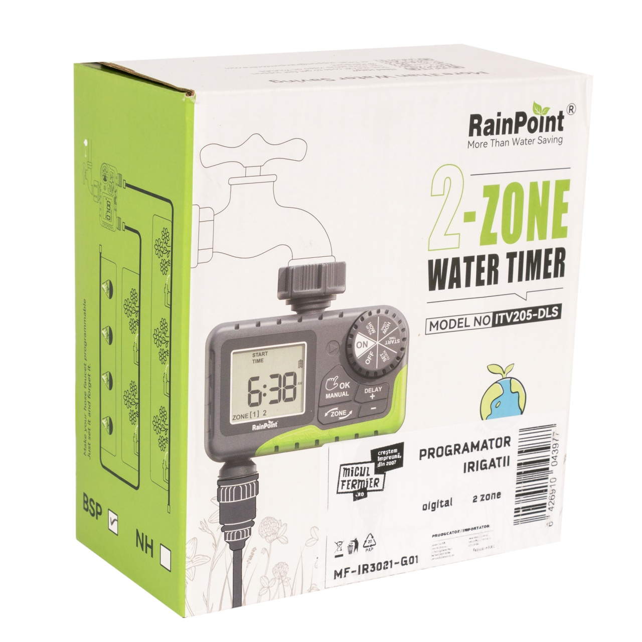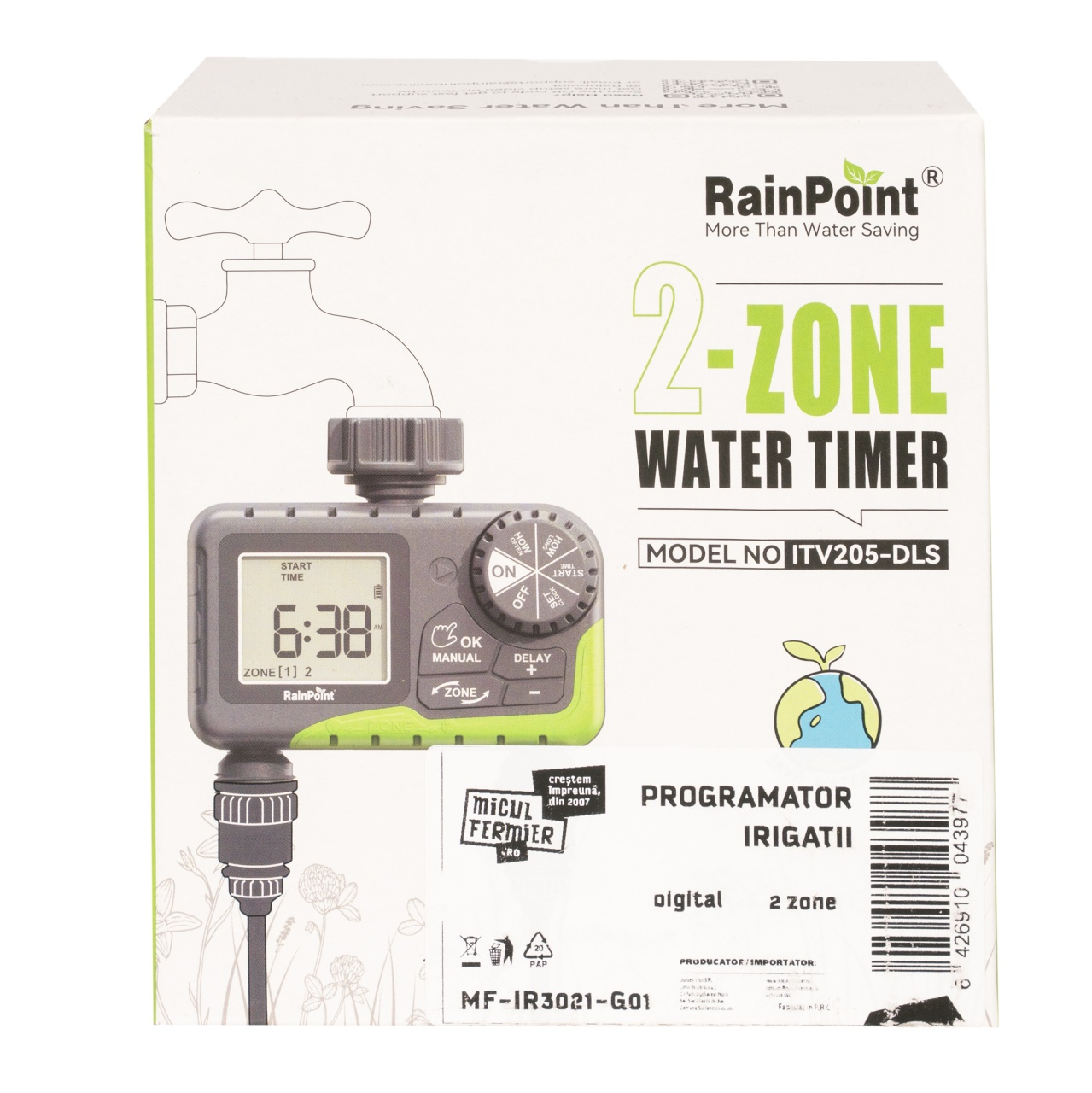 Programatorul de irigatii digital Micul Fermier este un dispozitiv util pentru automatizarea procesului de irigare, economisind timp si apa. Este conceput pentru a fi utilizat in gradini, sere, peluze sau