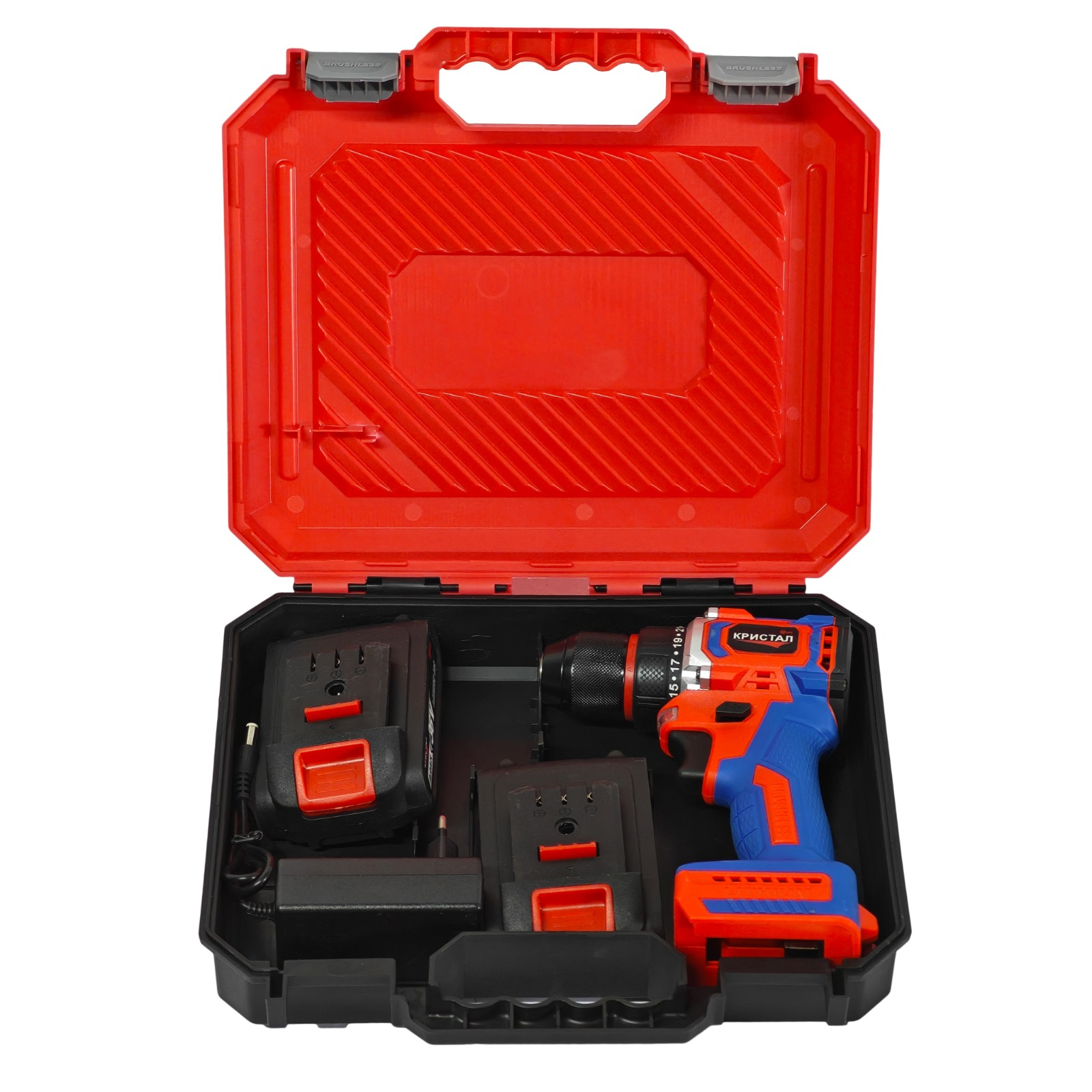 Bormașină cu acumulator DDT-KRISTAL 36V, 2 acumulatori Li-Ion 2.0Ah, motor fara perii (brushless), 2 viteze, cuplu reglabil, sistem autoblocaj, valiză de transport