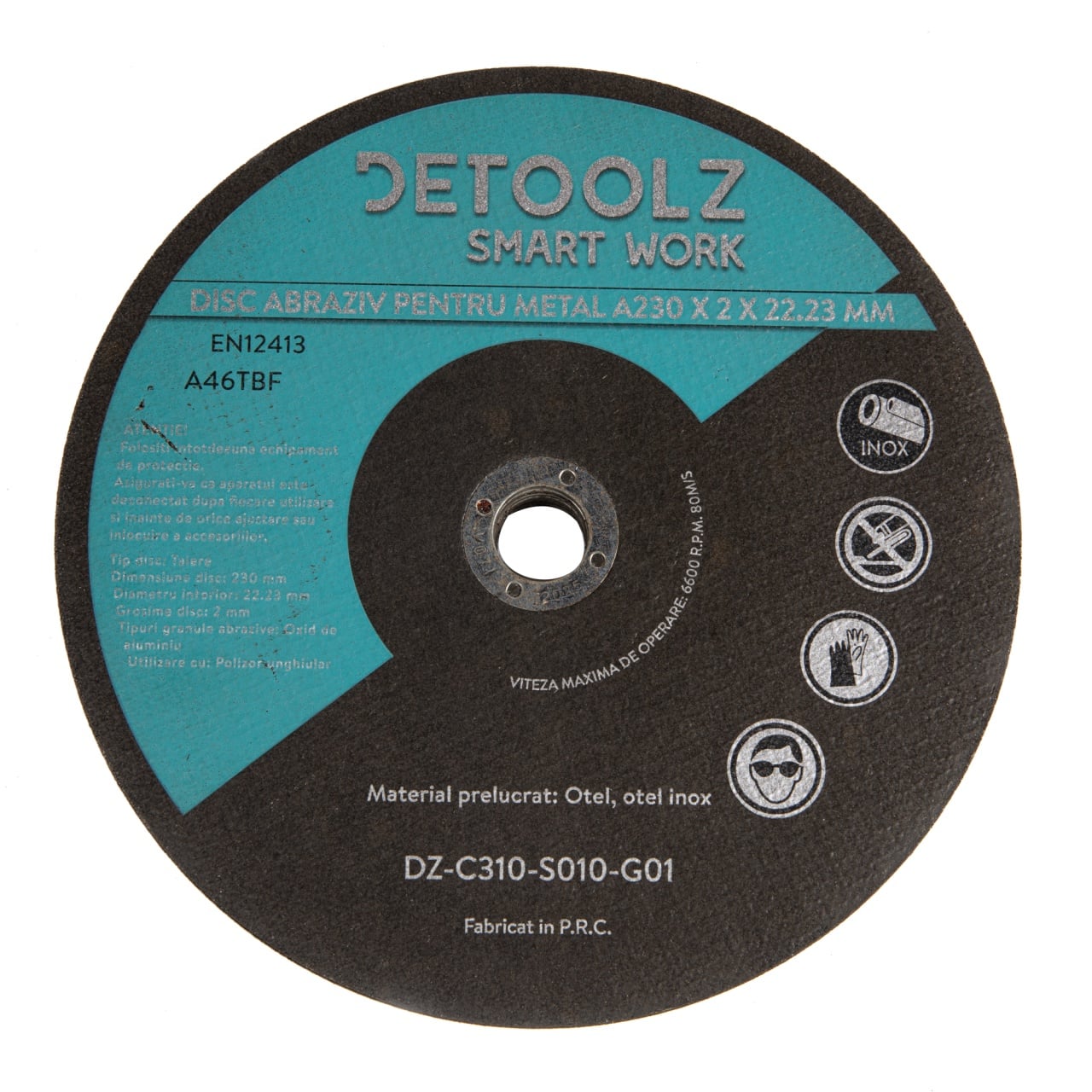 Set disc abraziv pentru metal 230 mm (10/set), Detoolz DZ-C310-S010-G01 In functie de duritatea discului, acesta este recomandat pentru debitare, taierea canalelor, operatii de degrosare executate manual, rectificare exterioara circulara, rectificare fara varfuri, rectificarea suprafetelor discontinue. |