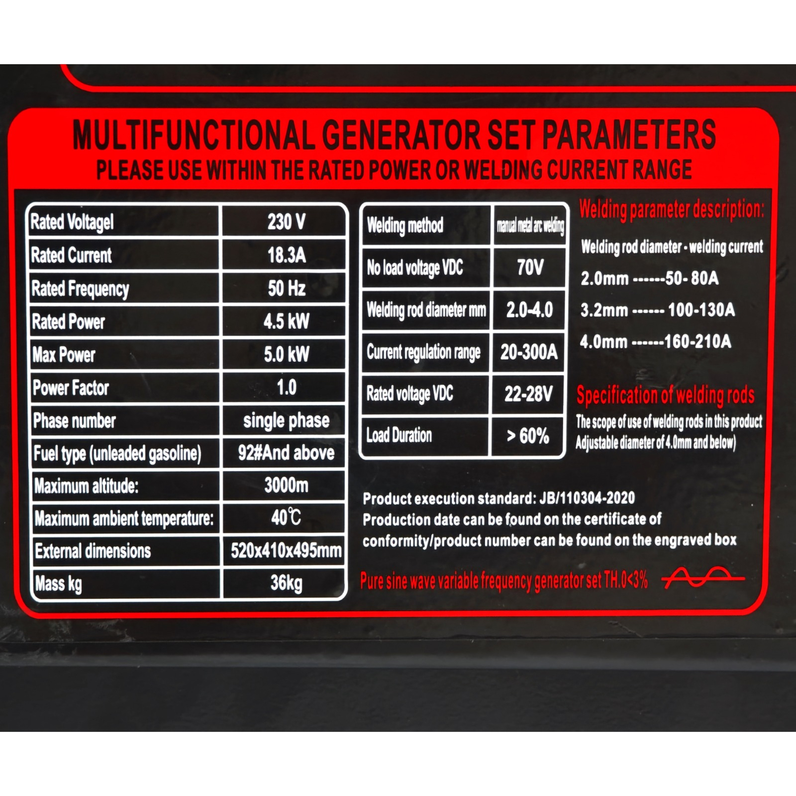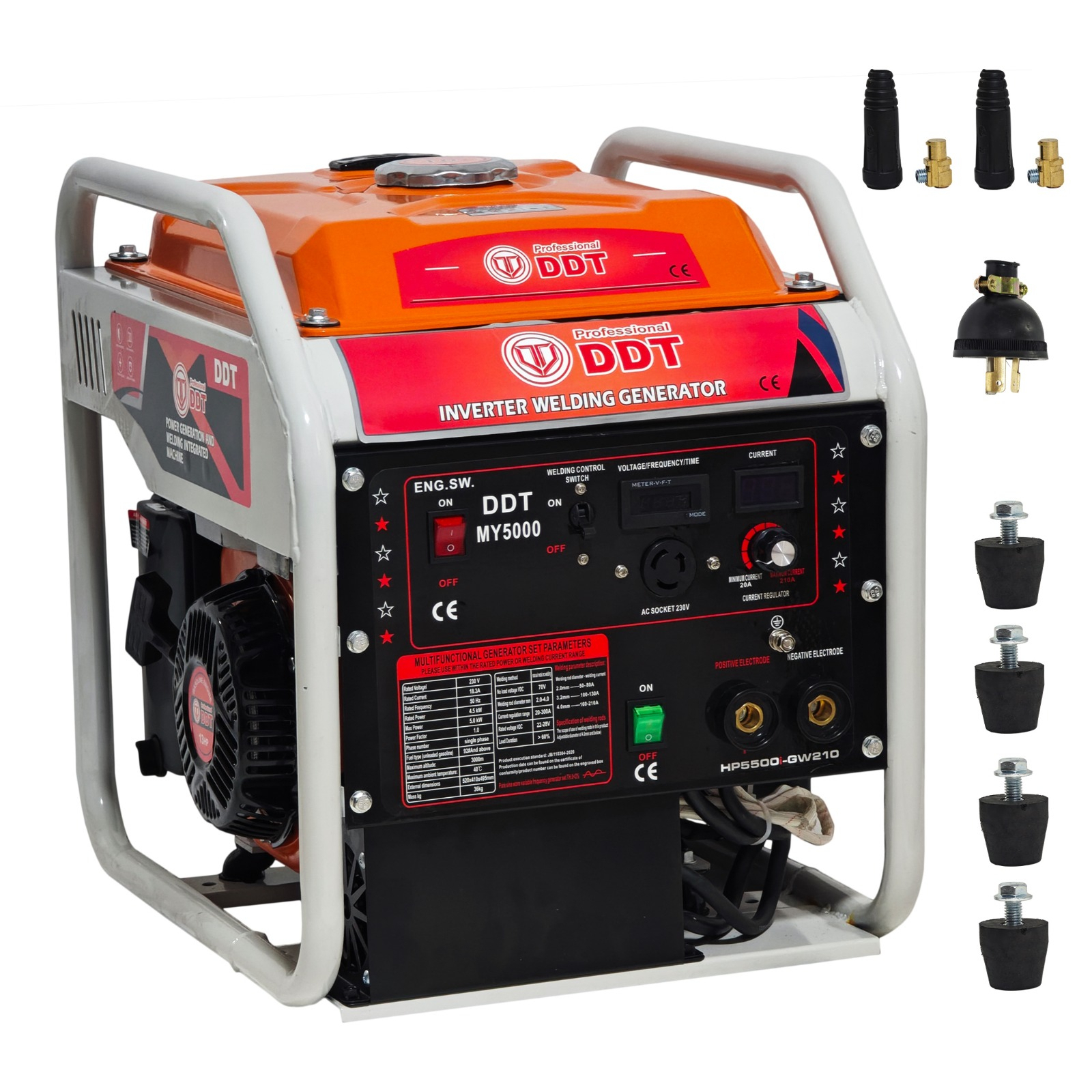 Generatorul de curent cu sudură DDT MY5000 este un echipament versatil, ideal atât pentru generarea de energie electrică, cât și pentru lucrări de sudură. Acesta combină performanța unui generator de 5,5 kW cu funcția de sudare, oferind un curent maxim de sudură de 300 A.