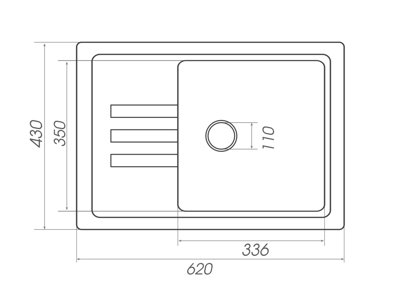 Designul ergonomic și dimensiunile sale bine proporționate permit o utilizare confortabilă, iar instalarea pe blat o face ușor de integrat în orice stil de bucătărie. Cuva spațioasă asigură un spațiu generos pentru spălarea vaselor, iar sistemul de scurgere 3 1/2” și diametrul de 110 mm contribuie la o evacuare rapidă a apei.