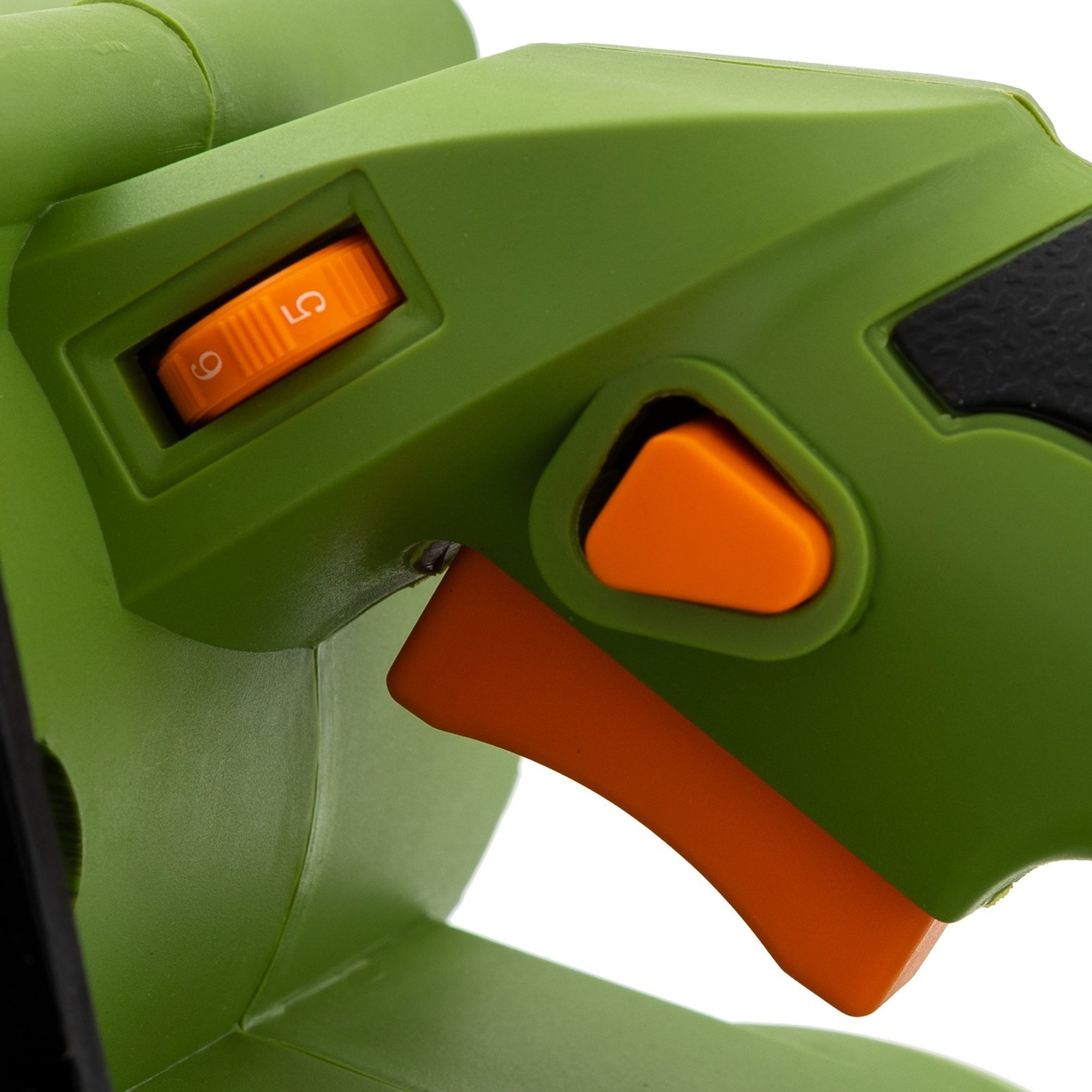 Capacul metalic articulat in stare ridicata permite macinarea cu partea superioara frontala a centurii, ceea ce faciliteaza foarte mult robotul pentru utilizarea in locuri greu accesibile. Alte functii importante: regulator de turatie al motorului in 6 pozitii (de la 120 la 380 rpm), blocarea butonului de pornire (utila pentru functionarea pe termen lung).