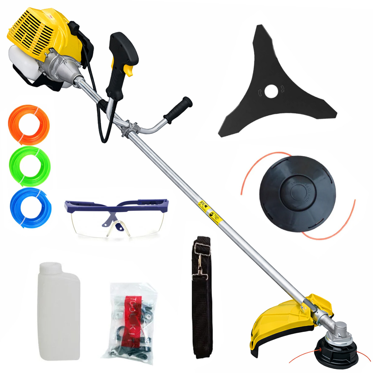 Aceasta motocoasa este compatibila cu o multitudine de accesorii care se potrivesc la tija de 28mm, cu 9 caneluri ( discuri: disc cu lant de drujba, 2T, 3T, 8T, 40T Vidia, 3-8 Lame mobile, toate tipurile de tramburi, cultivator, prasitoare, accesoriu tip fierastrau, accesoriu de taiat gard viu, accesoriu de curatat terenul de buruieni, roti de sprijin, disc tip perie-matura, disc perie sarma, adaptor cu elice pentru barca, centralizator strangere iarba, accesoriu de maruntit pentru motocoasa, etc.)