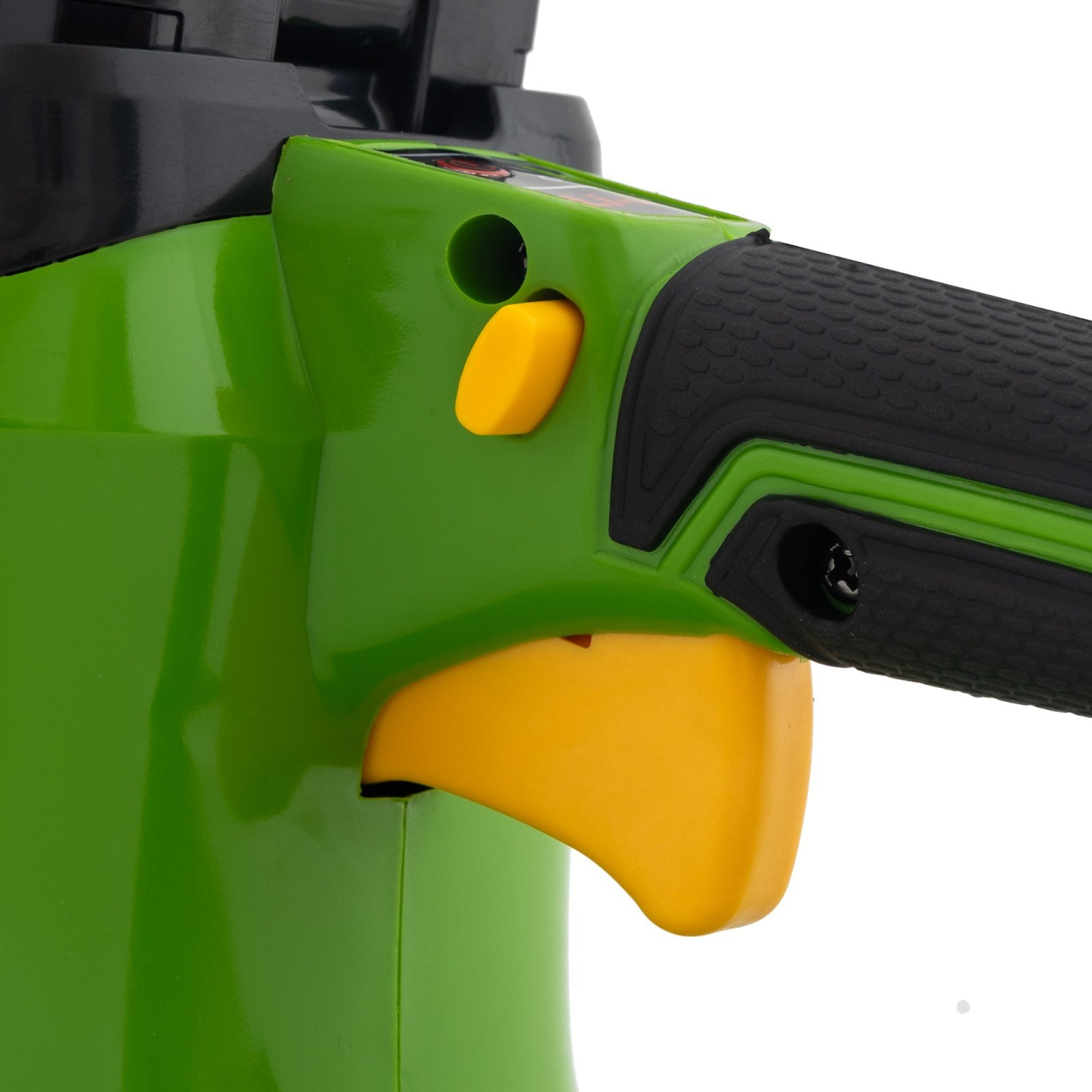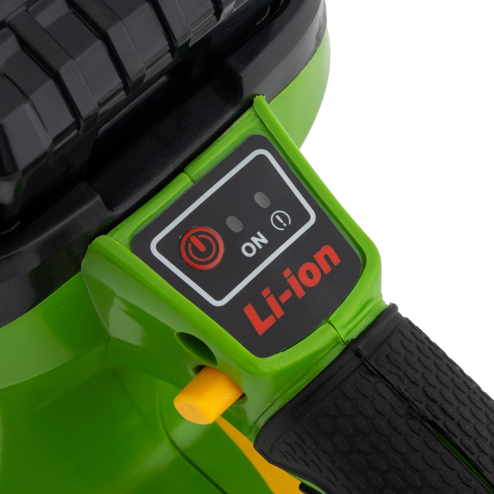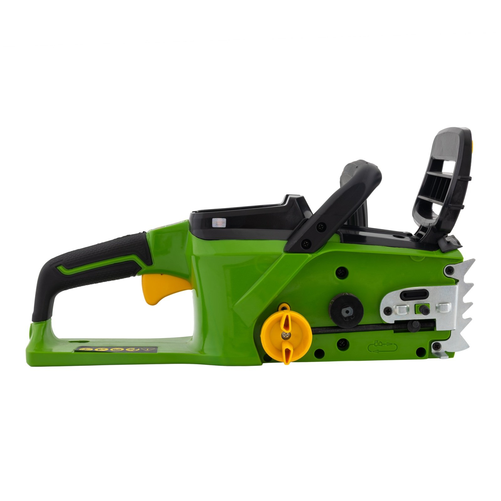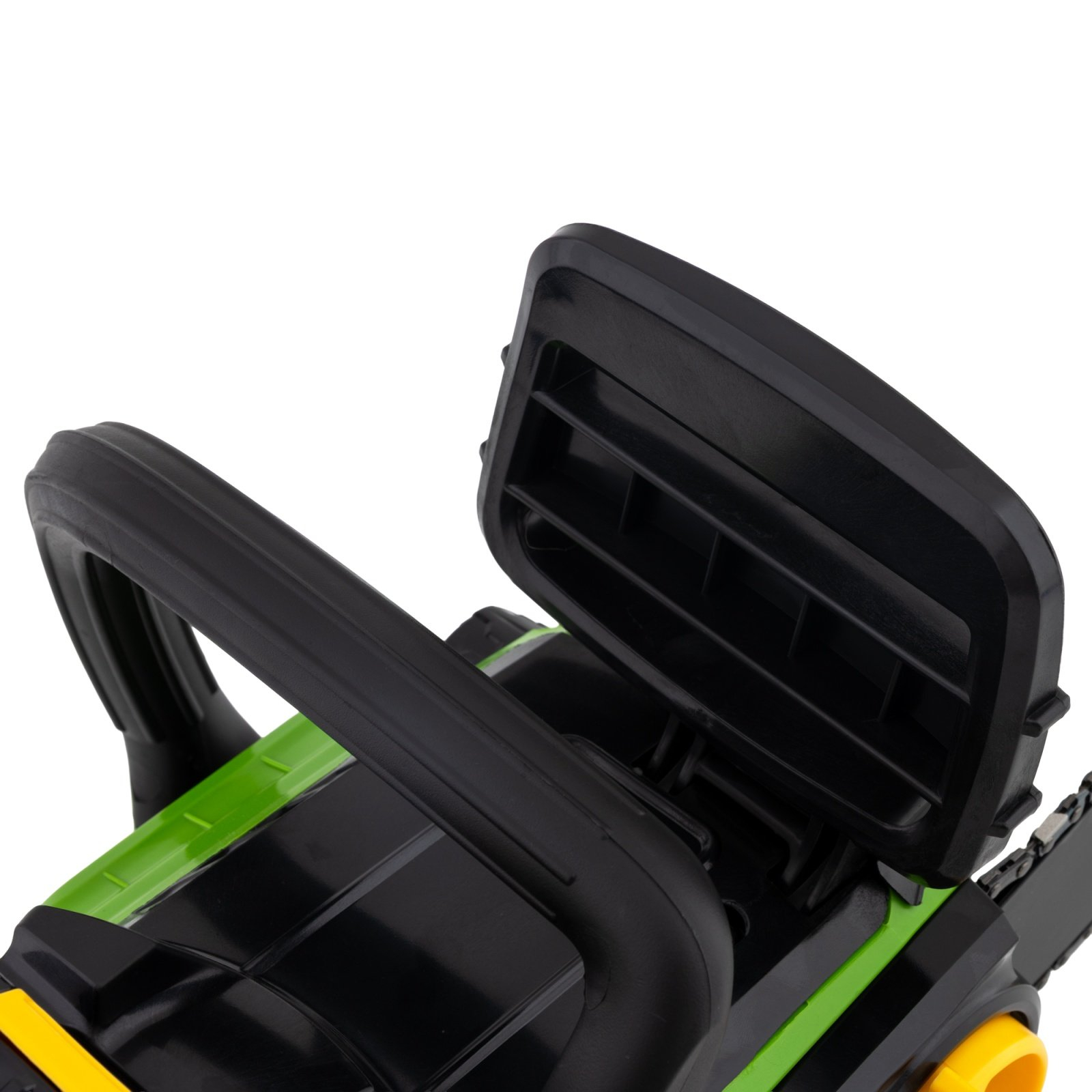 Lama de 35 cm este potrivita unui lant de 26 de dinti cu pas de 3/8”. Este dotata cu sistem de siguranta, ce previne pornirea daca frana este trasa. Butoanele de pornire activeaza motorul fara carbuni, fiind apasate in tandem. Acumulatorul este prevazut cu 5 leduri de indicare a nivelului de energie disponibil. Apasati butonul rosu odata pentru a vizualiza starea acumulatorului.