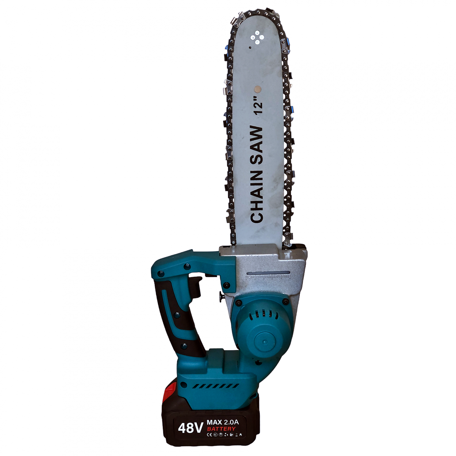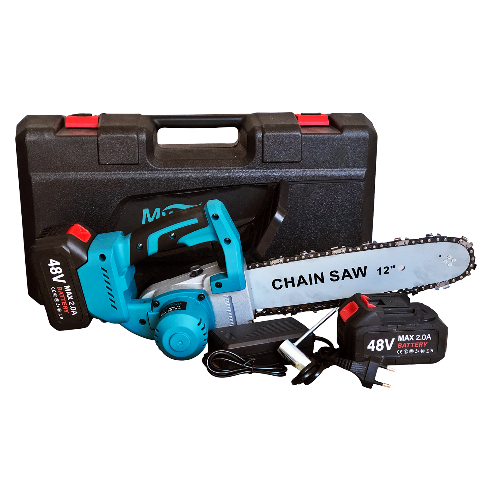 Electrofierastrau cu acumulator - este un fierestrau performant, usor si manevrabil, pentru taierea copacilor si a materialelor din lemn. Motorul electric este alimentat de o baterie de 48 V cu capacitatea de 2 Ah.