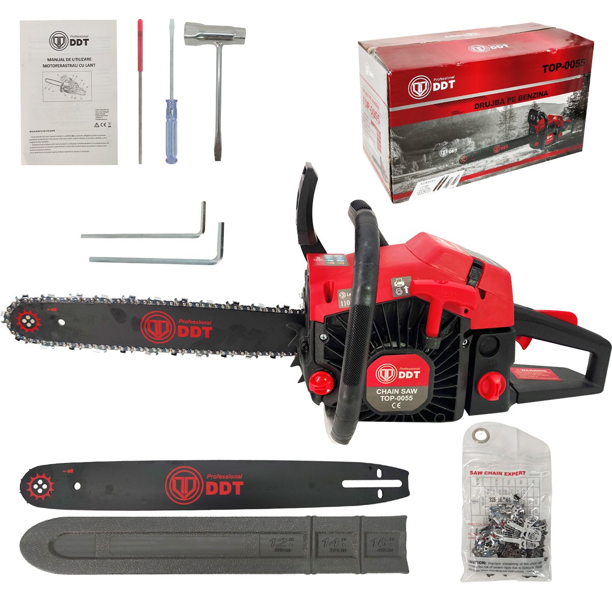 Funcționând cu benzină, drujba oferă libertate de mișcare și autonomie, fiind ușor de utilizat în zone fără acces la curent electric.