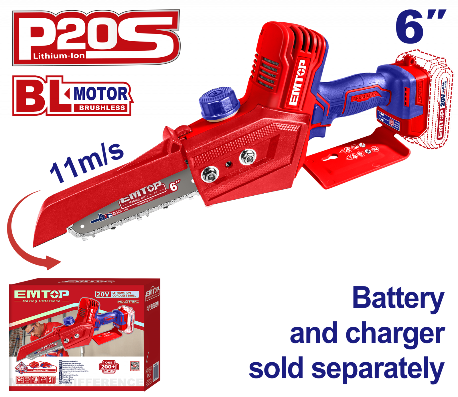 Mini fierastrau cu lant fara acumulator si incarcator, motor fara perii (brushless), 15cm - ELGA2068, EMTOP