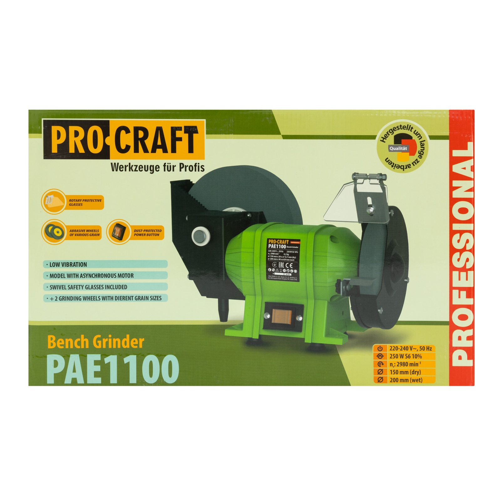 Polizorul de banc PROCRAFT PAE1100 este un instrument robust și eficient, ideal pentru lucrări de șlefuire, ascuțire și finisare a diferitelor materiale. Cu un motor puternic și un design compact.