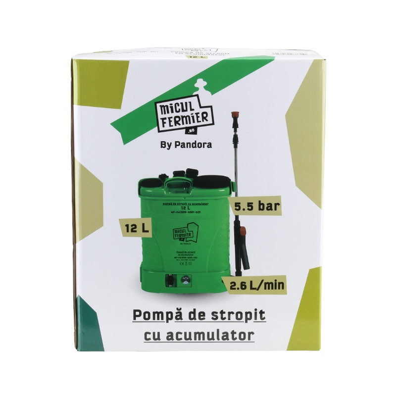 Eficiență și ușurință în aplicarea tratamentelor pentru plante! Pompa de stropit MF Pandora MF-PA1005-S001-G01 este soluția ideală pentru combaterea dăunătorilor, aplicarea îngrășămintelor lichide și dezinfectarea suprafețelor. Cu o capacitate de 12L și un acumulator de 12V/8Ah, asigură pulverizare uniformă și autonomie extinsă.