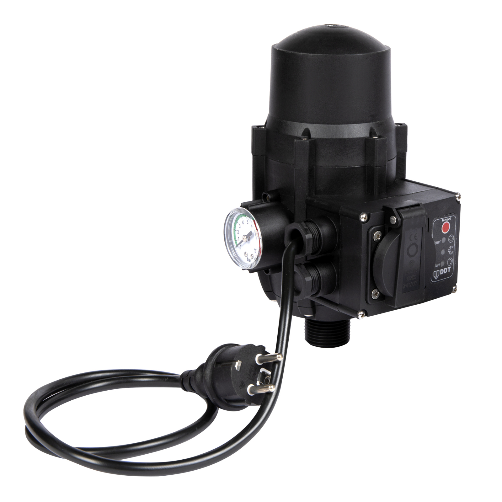 Presscontrol este un dispozitiv cu un concept nou , care garanteaza protectia si un control optim al pompelor de uz casnic . Pornind de un proiect hidraulic si logica electronica , presscontrolul detecteaza simultan atat presiunea si debitul , precum si gestionarea automata a functionarii pompei .