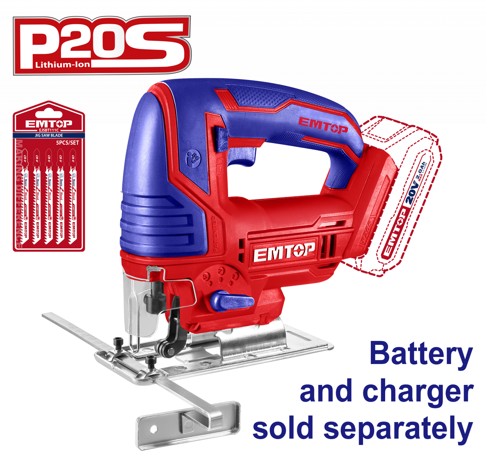 Fierastrau pendular fara acumulator si incarcator, 5 lame incluse - ELGS208501, EMTOP