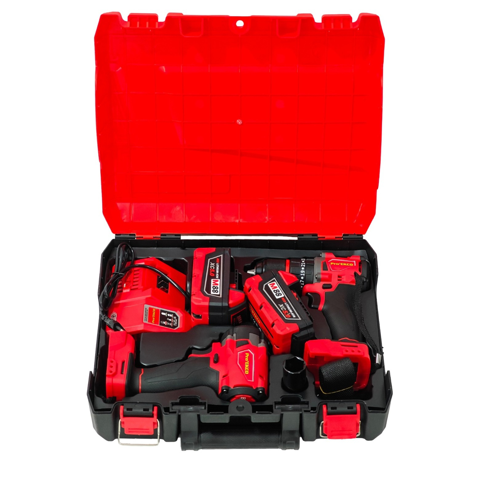 Trusa Pro’EKCO M88 FUEL este o soluție completă pentru lucrări de construcții, montaj, întreținere și reparații, fiind ideală atât pentru profesioniști, cât și pentru utilizatorii exigenți. Setul include două scule electrice cu motor brushless (fără perii), acumulatori de mare capacitate și accesorii esențiale, toate livrate într-o valiză rezistentă pentru transport și depozitare.