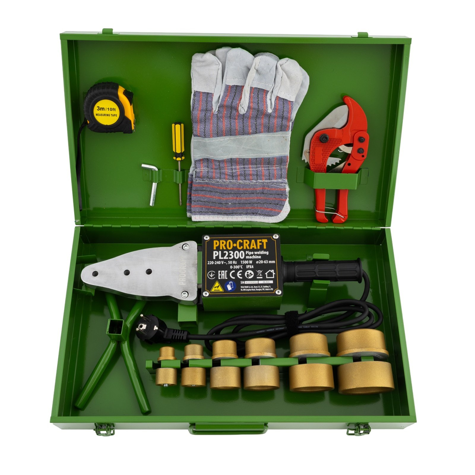 Trusa pentru sudat tevi PPR Procraft PL2300, de polipropilena, se folosesc in proiectele de instalatii sanitare, de alimentare cu apa si incalzire. O unealta folosita pe larg, de catre instalatori, pentru interconectarea si lipirea tevilor intre ele, pentru a crea reteaua termica si de alimentare cu apa.